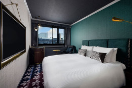 アールデコ調の豪華なインテリア、居心地の良い窓際のコーナー席を備えたスーペリアキングルーム。