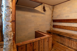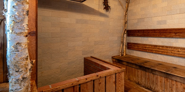白樺の木のデザインが印象的なサウナ。