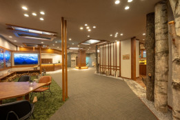白樺やカエデなど、白金の森をイメージしたロビー。