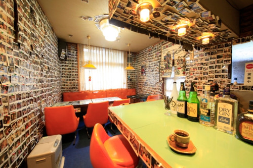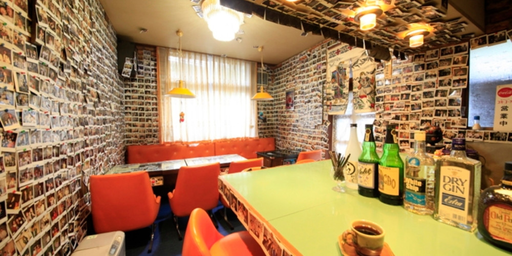 壁にはお客さんの思い出の写真を飾ってある思いであふれる空間。