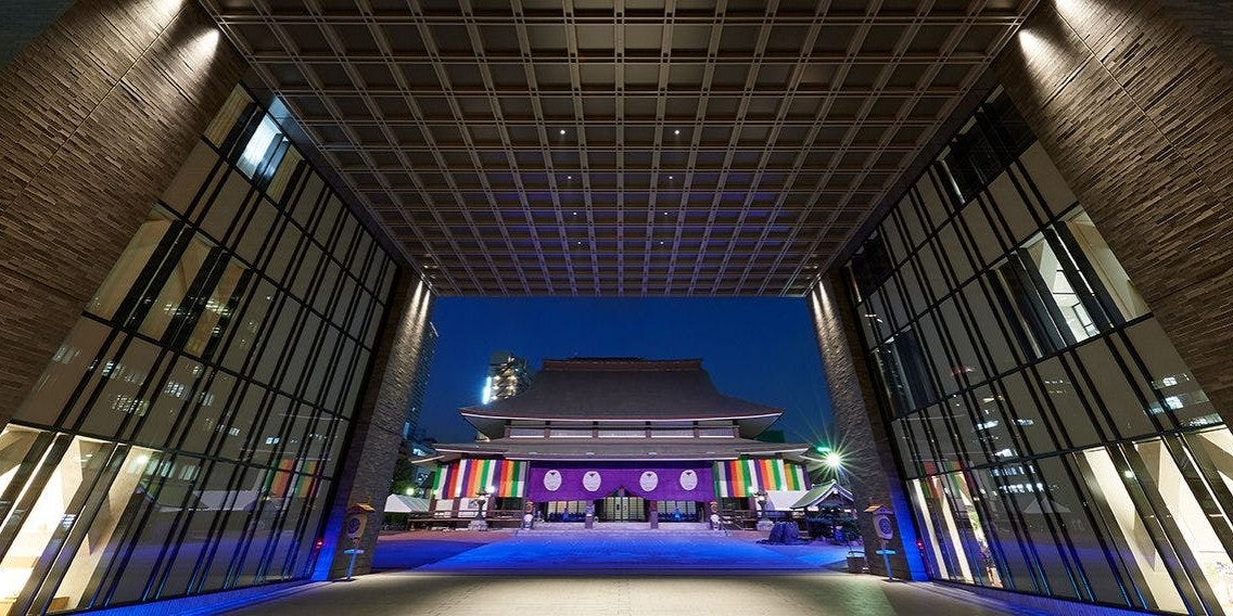 大阪「南御堂」の境内に立つ、日本初の山門と一体となったホテル