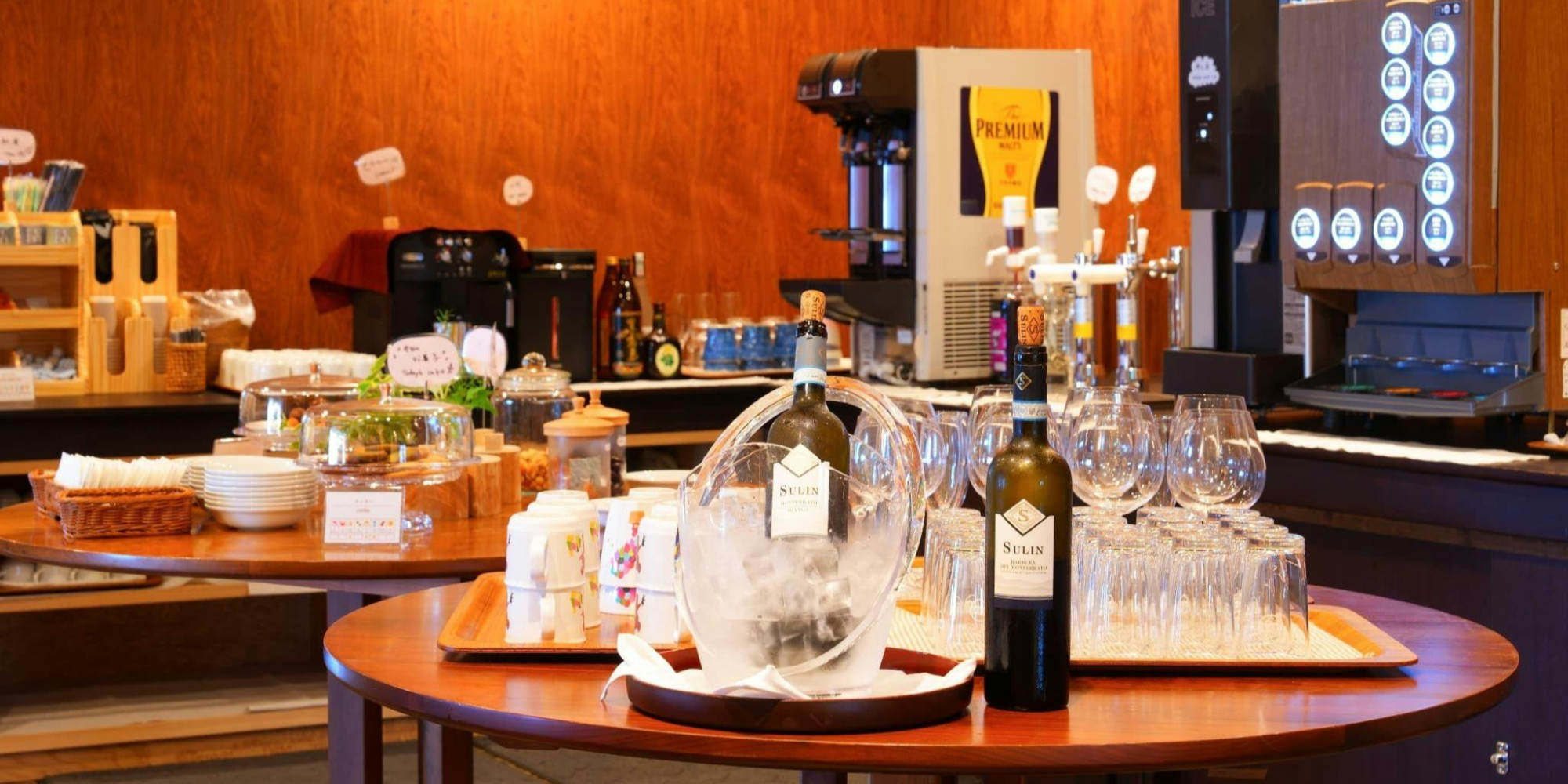 フロント棟のラウンジでは、アルコールやソフトドリンクをフリードリンクにてご用意しており、ご滞在中はお食事の時間を含め、すべて無料のオールインクルーシブでお楽しみいただけます。