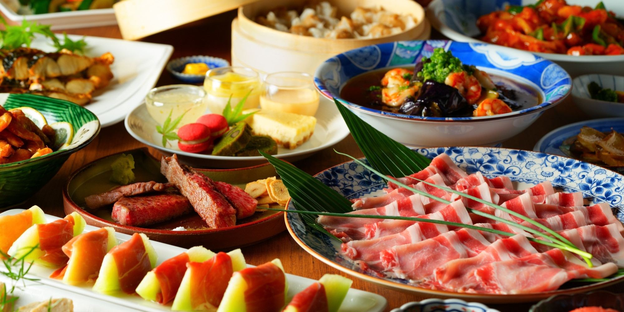 鉄板焼きを中心とした和洋折衷のハーフビュッフェをお楽しみいただけます。