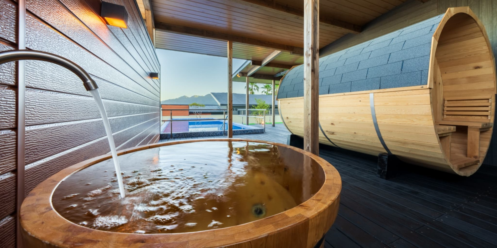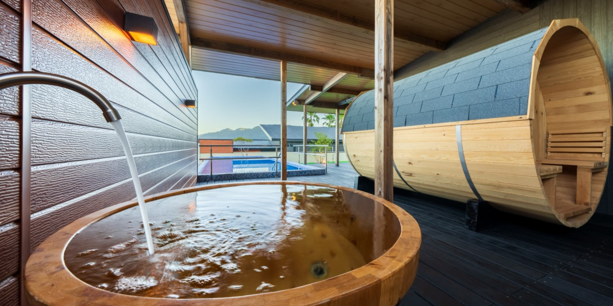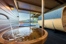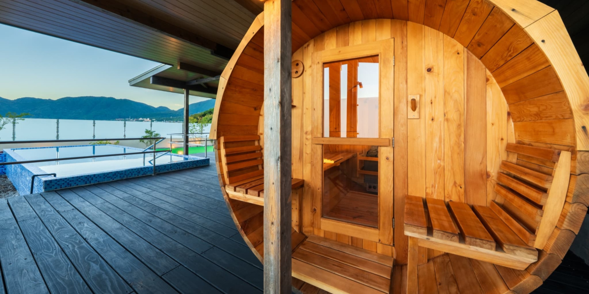 全客室に低温バレルサウナと水風呂をご用意しています。