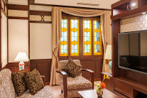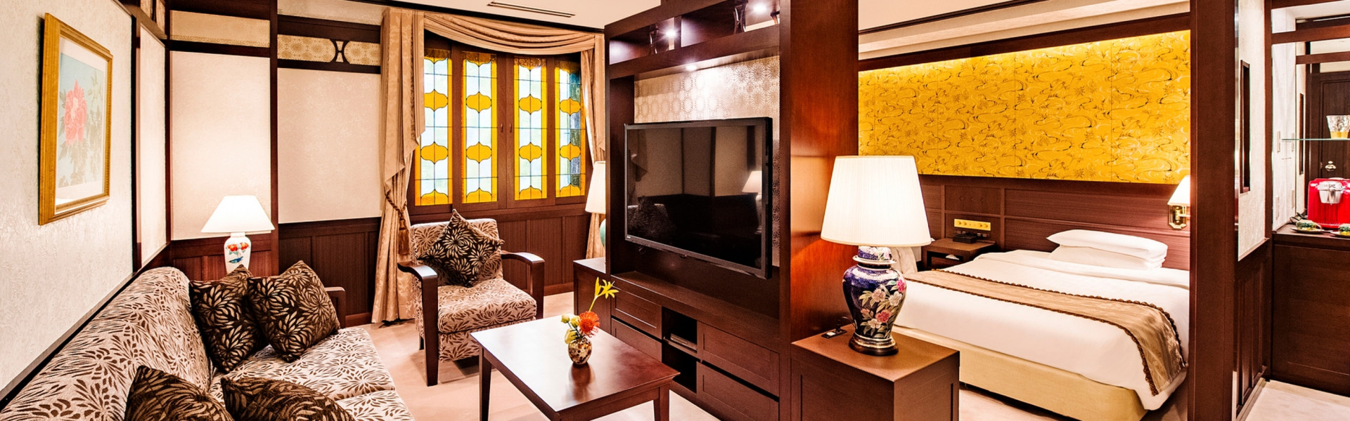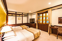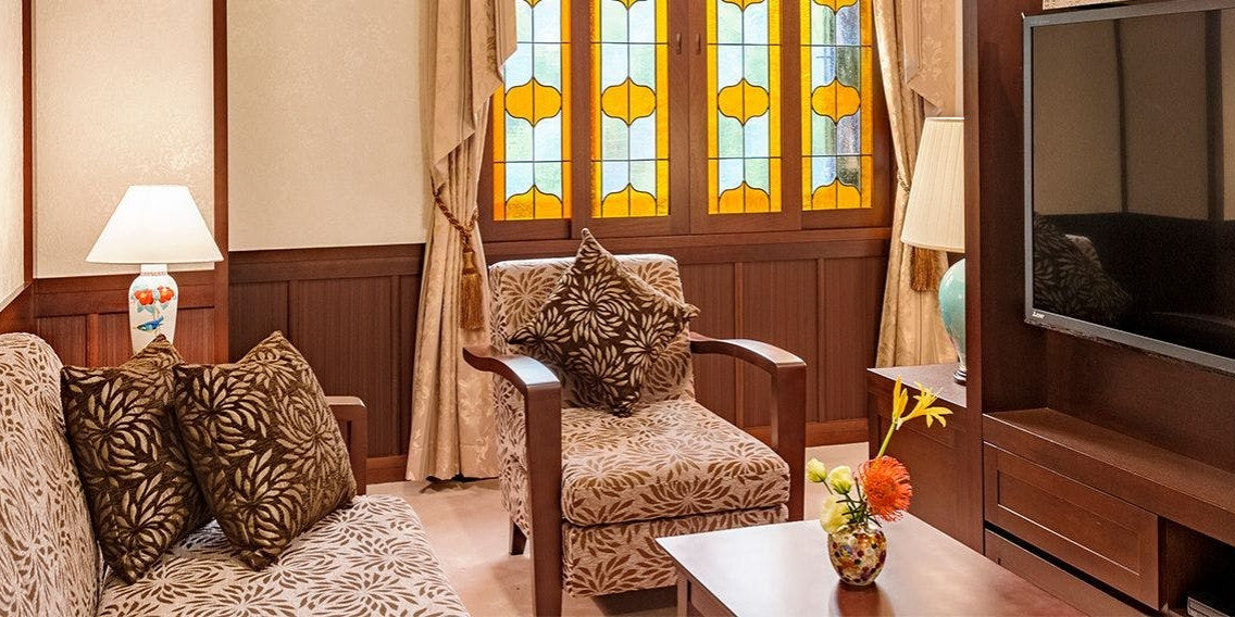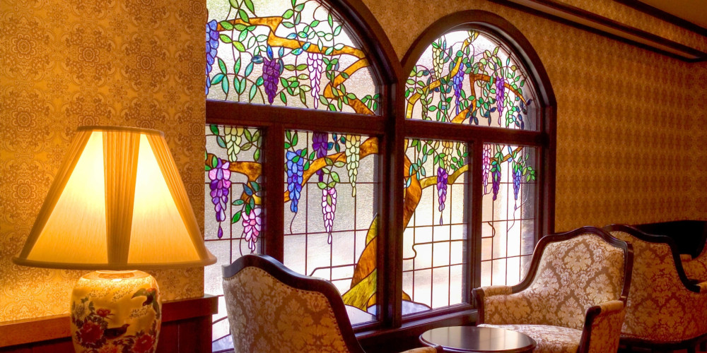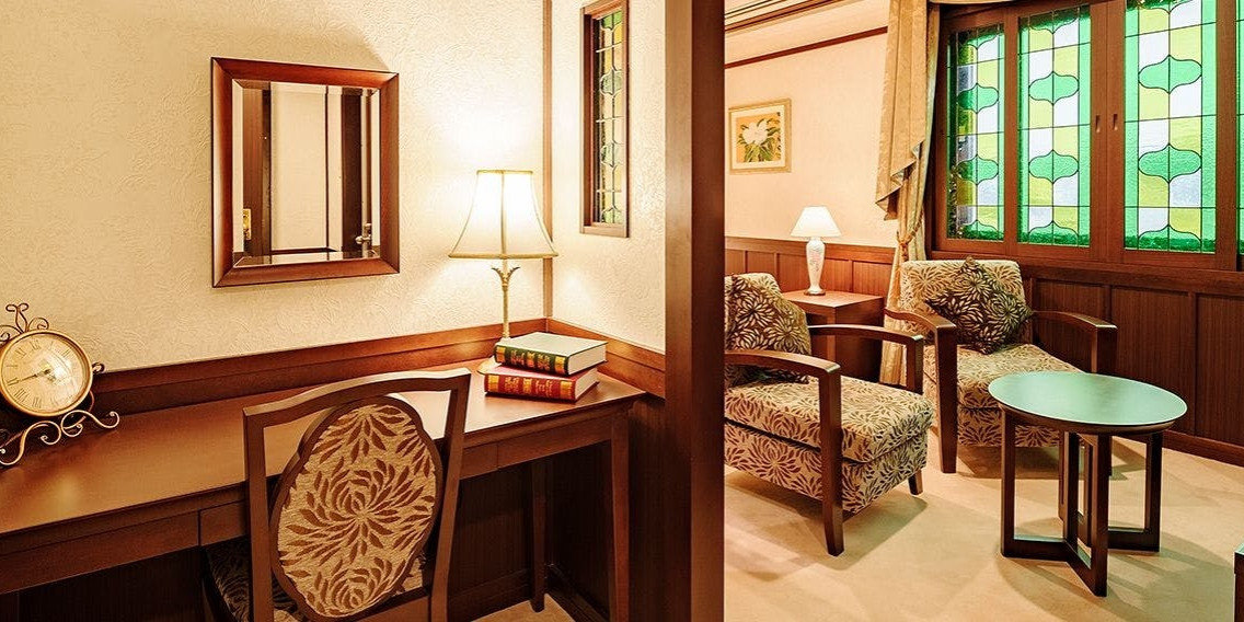 2タイプのお部屋「浪漫ラグジュアリー」と「浪漫ツイン」、いずれもステンドグラスや壁紙など室内の細部にまでこだわりを施し、優雅でどこか懐かしい趣きのある空間としています。浪漫ルームにご宿泊のお客様限定の特典・宿泊プランもご用意いたします。