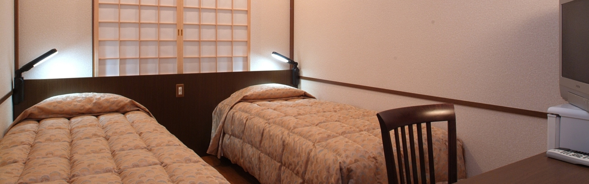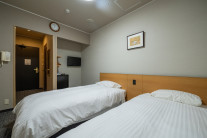 落ち着きのある広さと十分な設備。和のテイストを織り交ぜたツインタイプの洋室をご用意。