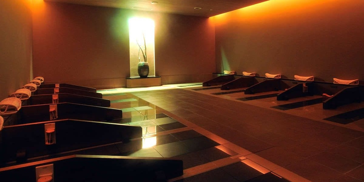 開放感のある、フロア型・乾式の岩盤浴スタイル。