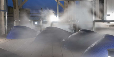 ナノサイズの温かいミストが身体を優しく包み込む、 全く新しい体感浴『ナノクラ』。 雲に包まれたような気分で、心地よくリフレッシュ。