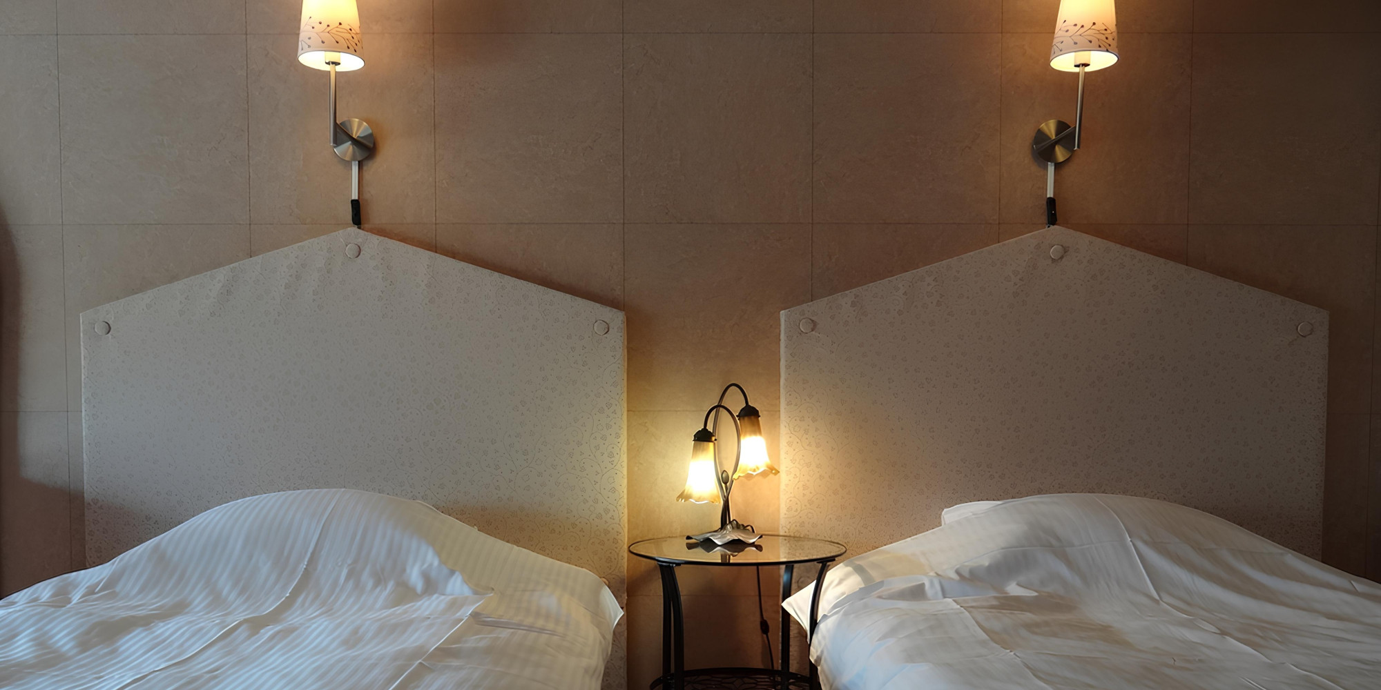 豪華で大きななベッドルームにはセミダブルサイズのツインベッドを常設。