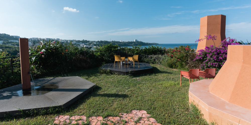 2階のテラスからは残波岬の海と島時間を感じる畑の景色。夕方の美しいサンセットと夜の満点の星空は、心を和やかに解放してくれます。