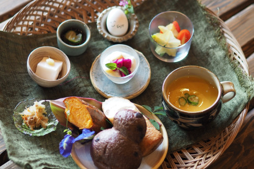 近隣農家さんが真心を込めてつくった野菜。とれたて食材の味を活かした朝ごはんをお届けします。