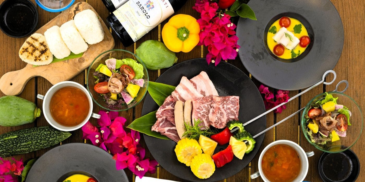 夕食 「和琉会席」「サンセットBBQ」