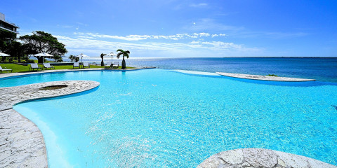 ゆっくりと流れゆく時間をプールサイドで過ごすのもお勧め。まるで海とつながったように見える景色を体感いただけます。