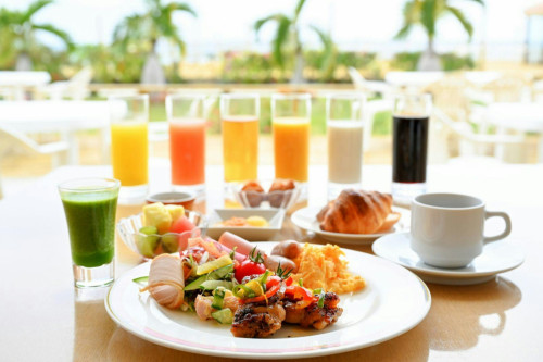 ご朝食はブーゲンの浜にて、地元八重山の食材を