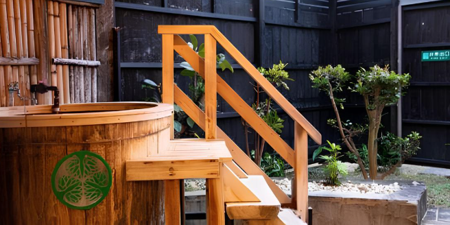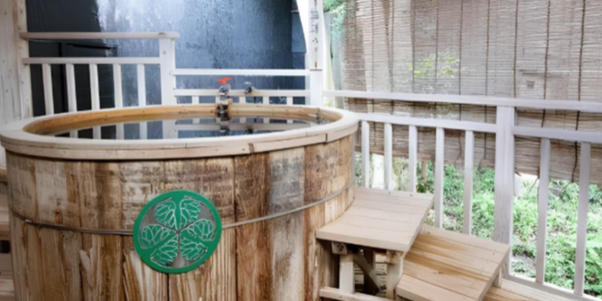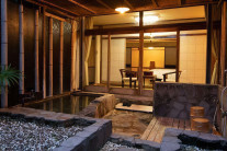 「源泉亭」「温暖荘」の客室では、岩風呂と梅樽温泉の2つのお風呂が客室に付いており、まさに温泉三昧気分を満喫していただけます。