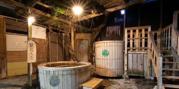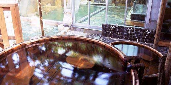 男女各3種類の源泉かけ流し露天風呂があり、岩風呂と梅樽温泉の2種類の露天風呂がそれぞれ楽しめる仕様になっており、