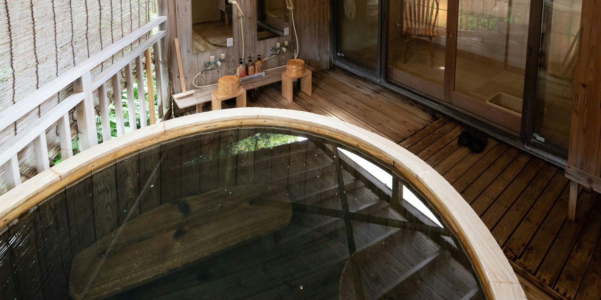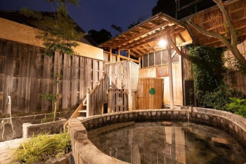 露天風呂付客室は、人目も気にせずゆっくりと温泉をお楽しみいただけますので、
