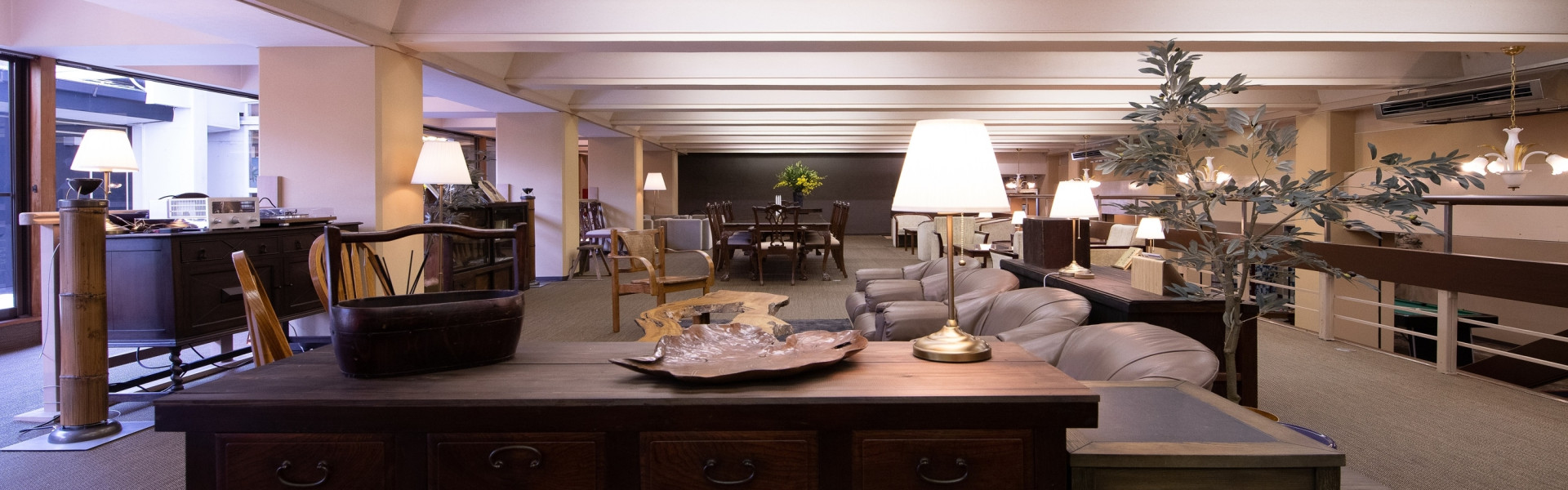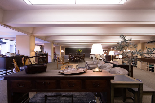 昔懐かしい昭和の香りのするリビングでは様々なタイプのソファや椅子をご用意。