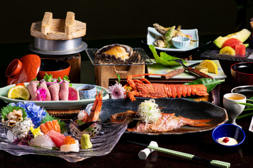 お楽しみの夕食は、駿河湾の新鮮な海の幸をふんだんに使った懐石料理。