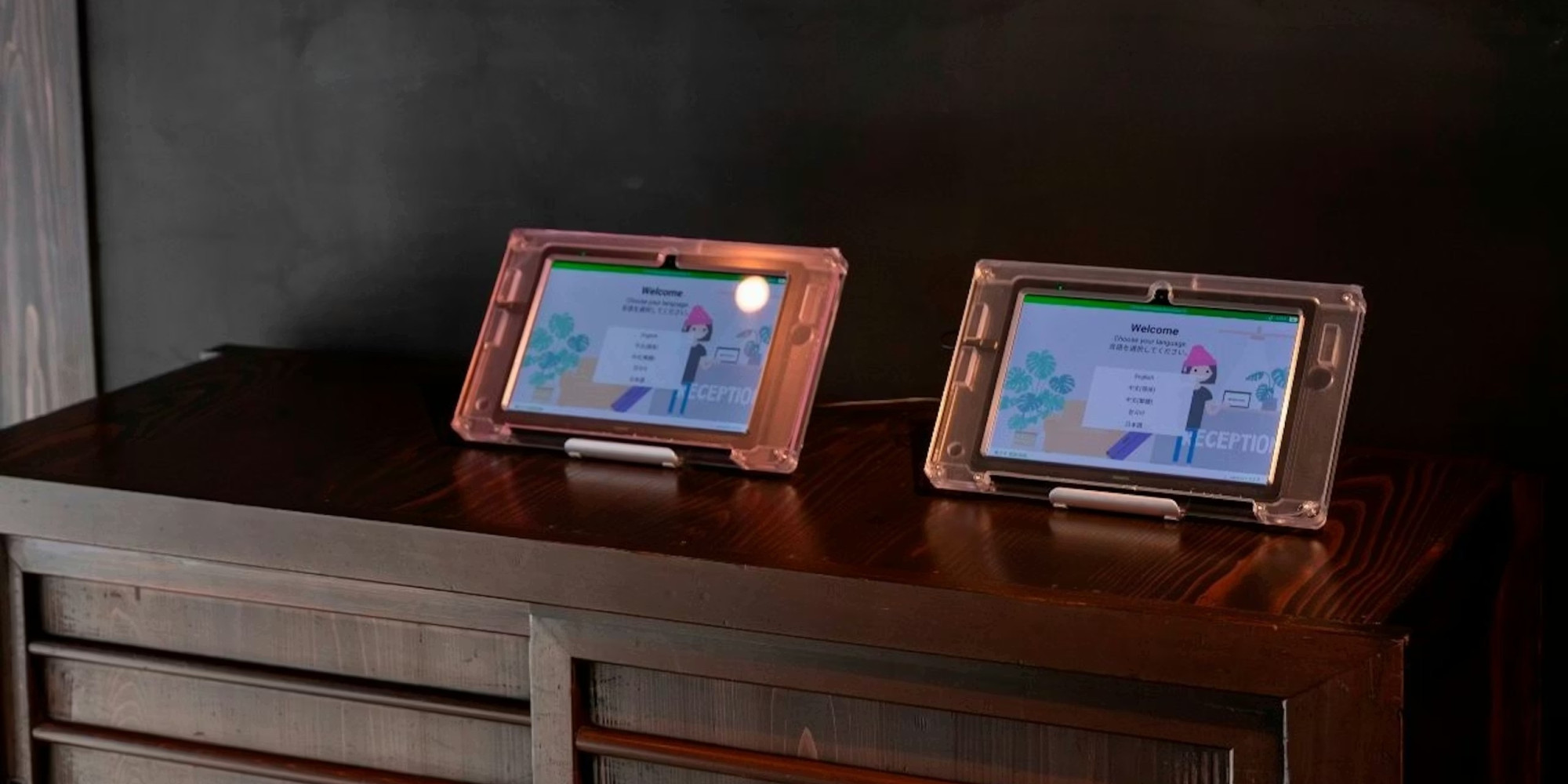 棟内の無人チェックインタブレットにてチェックインを行う際、お部屋と建物エントランスの入館時に必要な施錠暗証番号をメールにてお送りいたします。