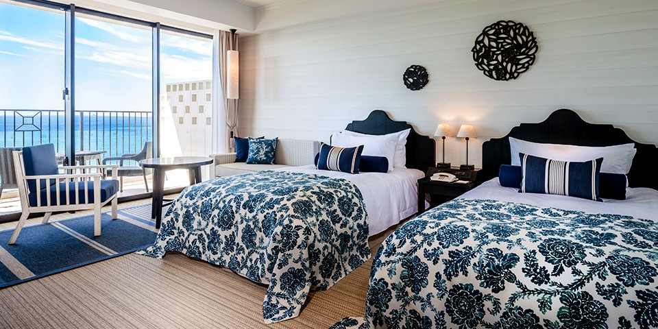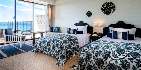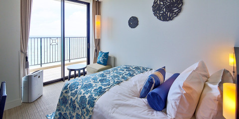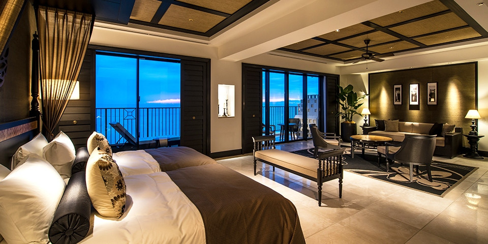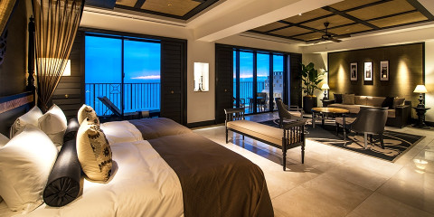 大人の雰囲気で落ち着いた客室や沖縄の空と海をテーマにした客室など、