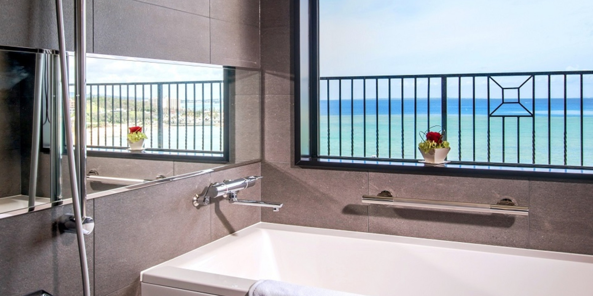 バルコニーに面したバスルームで 最高のリラックスタイムを