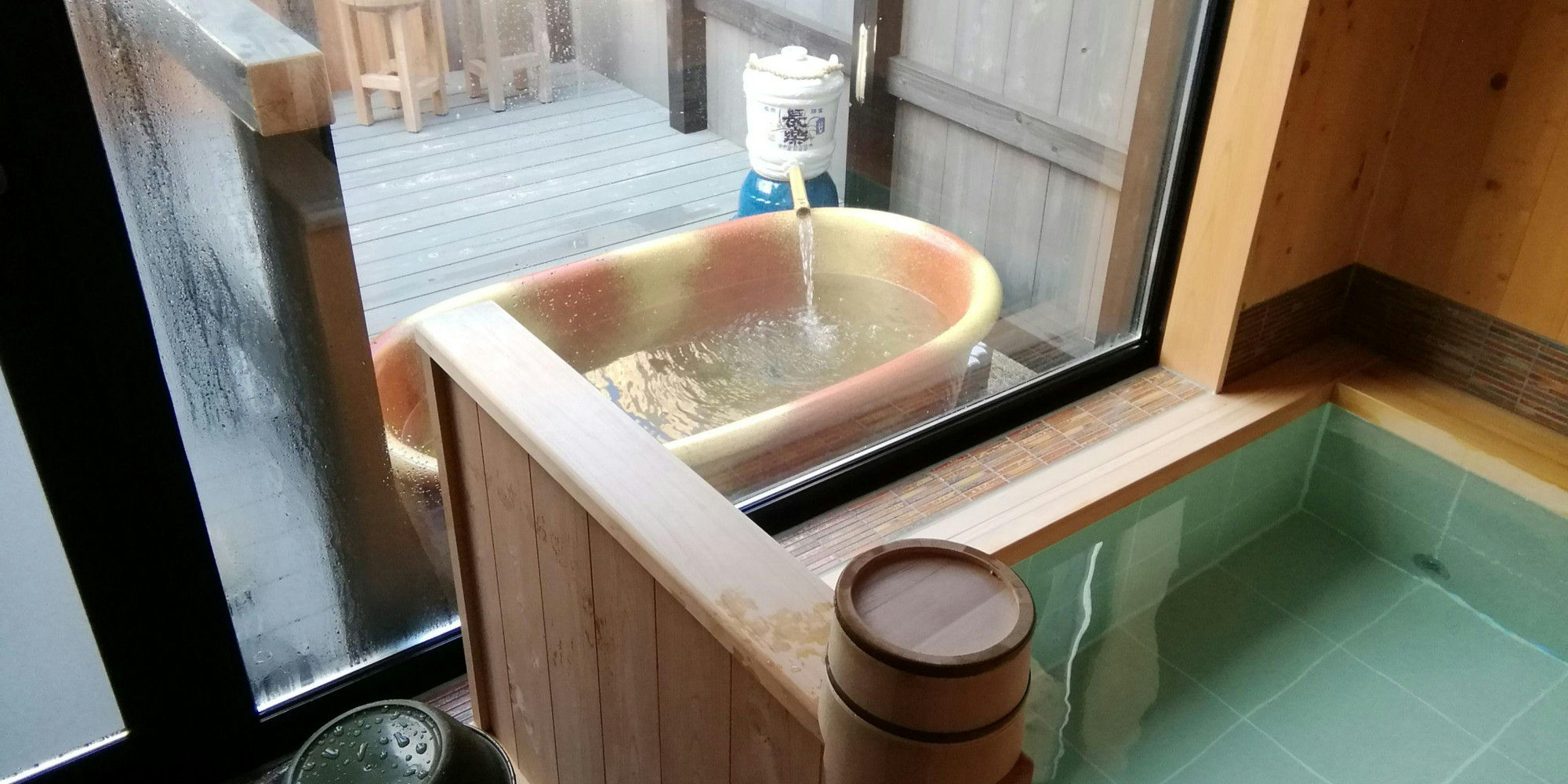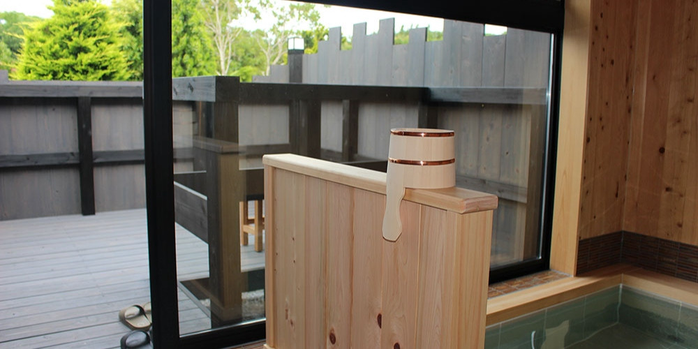 檜の香りに包まれた広々としたお風呂で体を癒し、開放感あふれる縁側デッキで心を解き放つ贅沢な時間。人目を気にすることなく、ゆったりと流れる「大人の癒し」をご堪能ください。