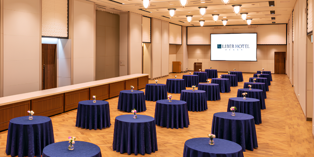最大140名(立食式)まで収容可能な、当ホテル最大のファンクションルームです。パーティー・宴会やイベント、社員旅行や修学旅行でのお食事など、さまざまなシーンに合わせてご利用いただけます。また、最大4分割でのご利用も可能です。