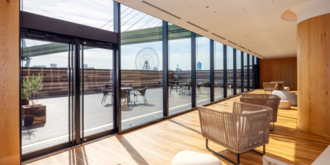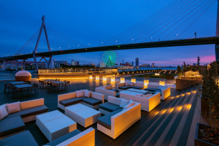 安治川に面した広大なテラスは