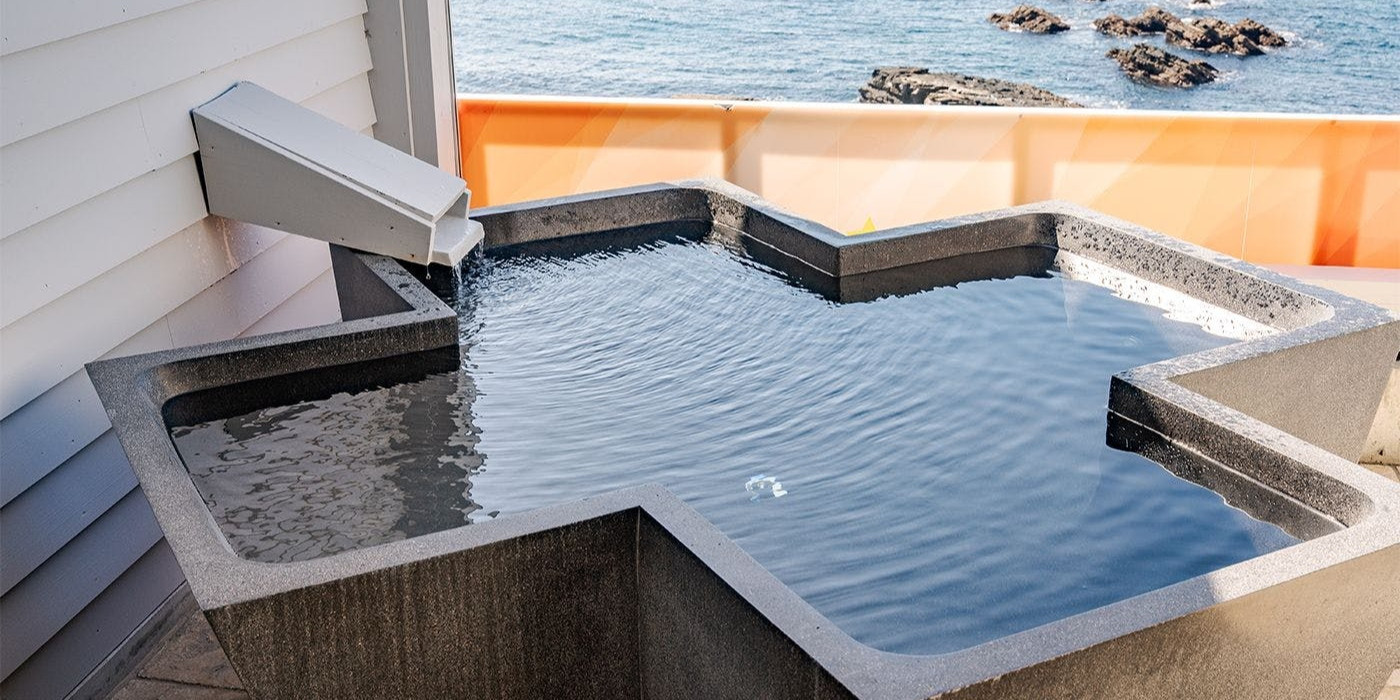 隣地の源泉よりお部屋の露天風呂にダイレクトイン。天然温泉の源泉かけ流しをお部屋の露天風呂と内風呂の両方で楽しめます。