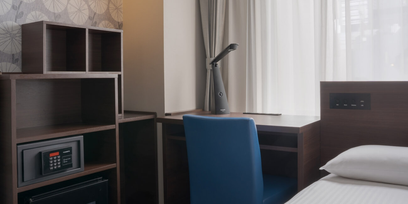 コンパクトながらも清潔で機能性あるお部屋でごゆっくりお休みください。