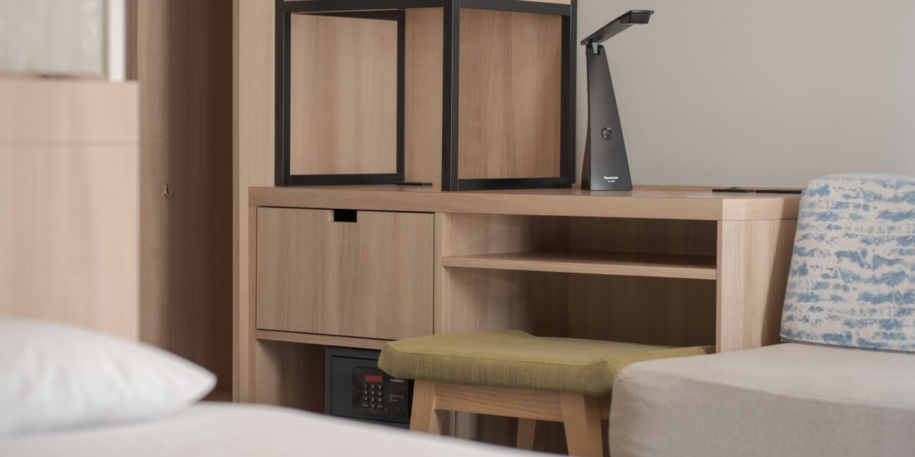ベッド下には荷物の収納スペースを設けるなど、お部屋をより広く、快適にお使いいただけるよう配慮しています。