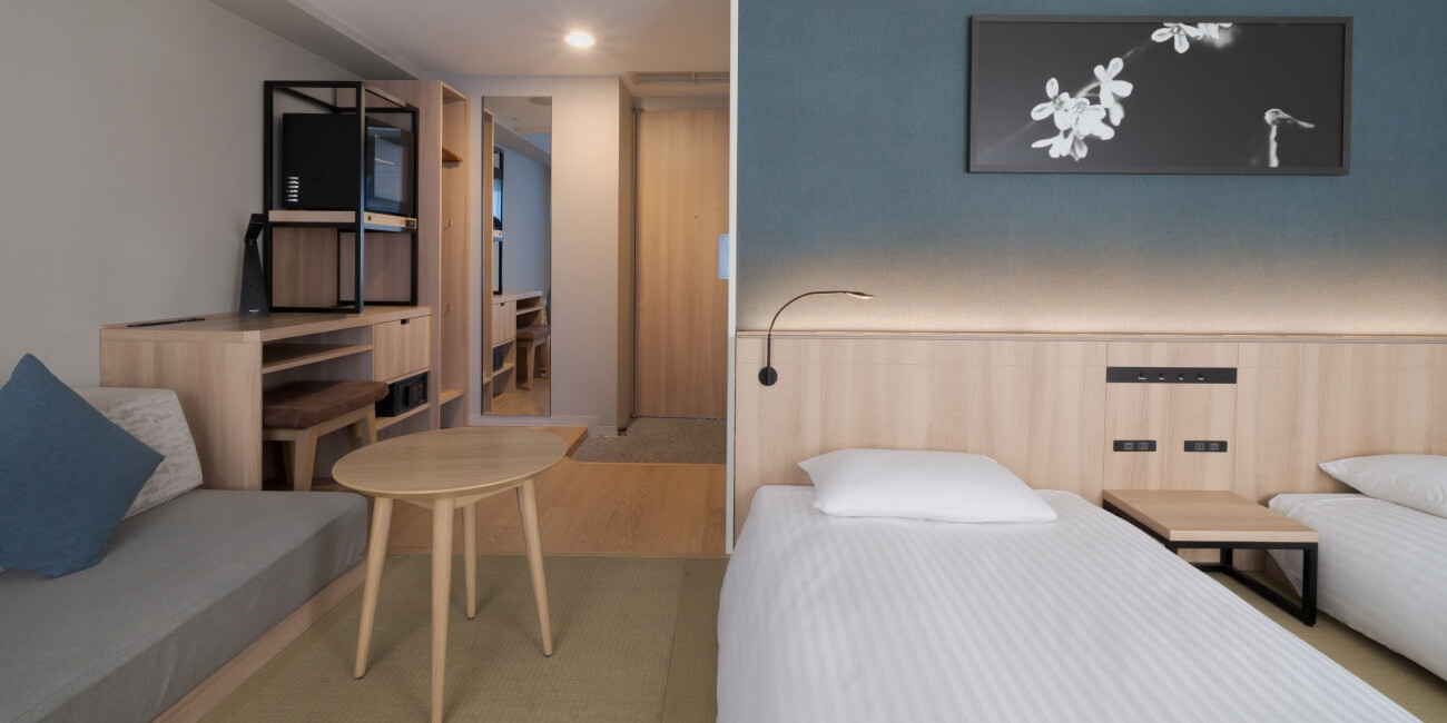 お子様連れや外国の方にも喜ばれる畳敷きの和洋室は、ローベッド2台で乗り降りも楽。
