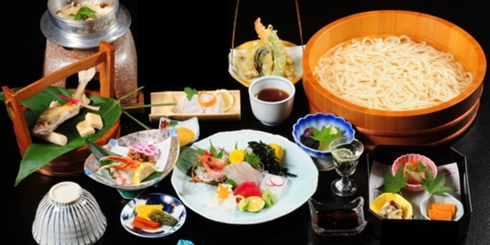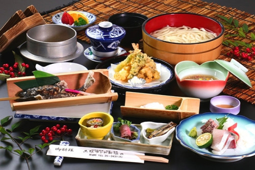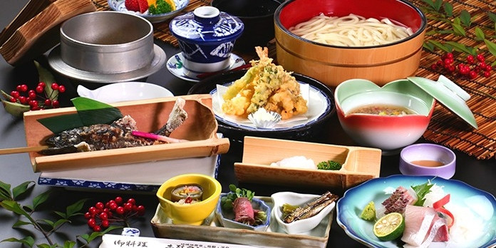徳島名物「阿波尾鶏」をはじめ、たらいうどんや阿波牛など地元食材を贅沢に使用。