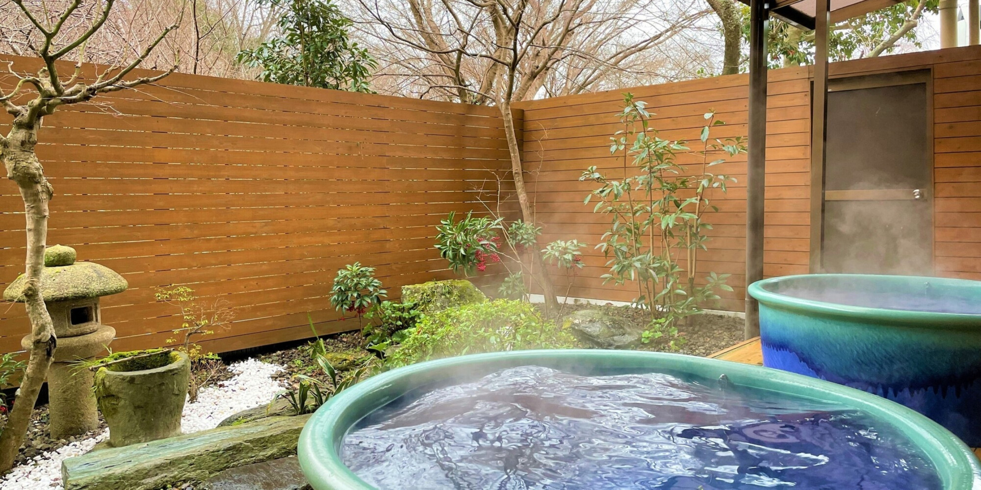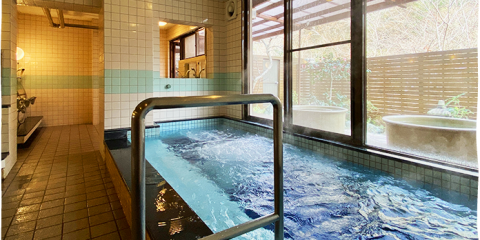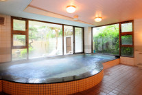 開放感のある外湯で四季折々の顔を見せる庭園を望みながら、入浴をお楽しみ頂けます。