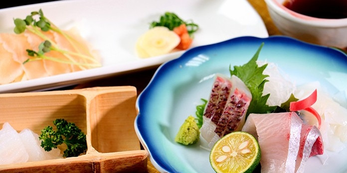 近海の『鳴門鯛』をはじめ、ブランド地鶏の『阿波尾鶏』、平成元年に最優秀賞を獲得した、全国でも有数の銘柄『阿波牛』と山・海の幸。