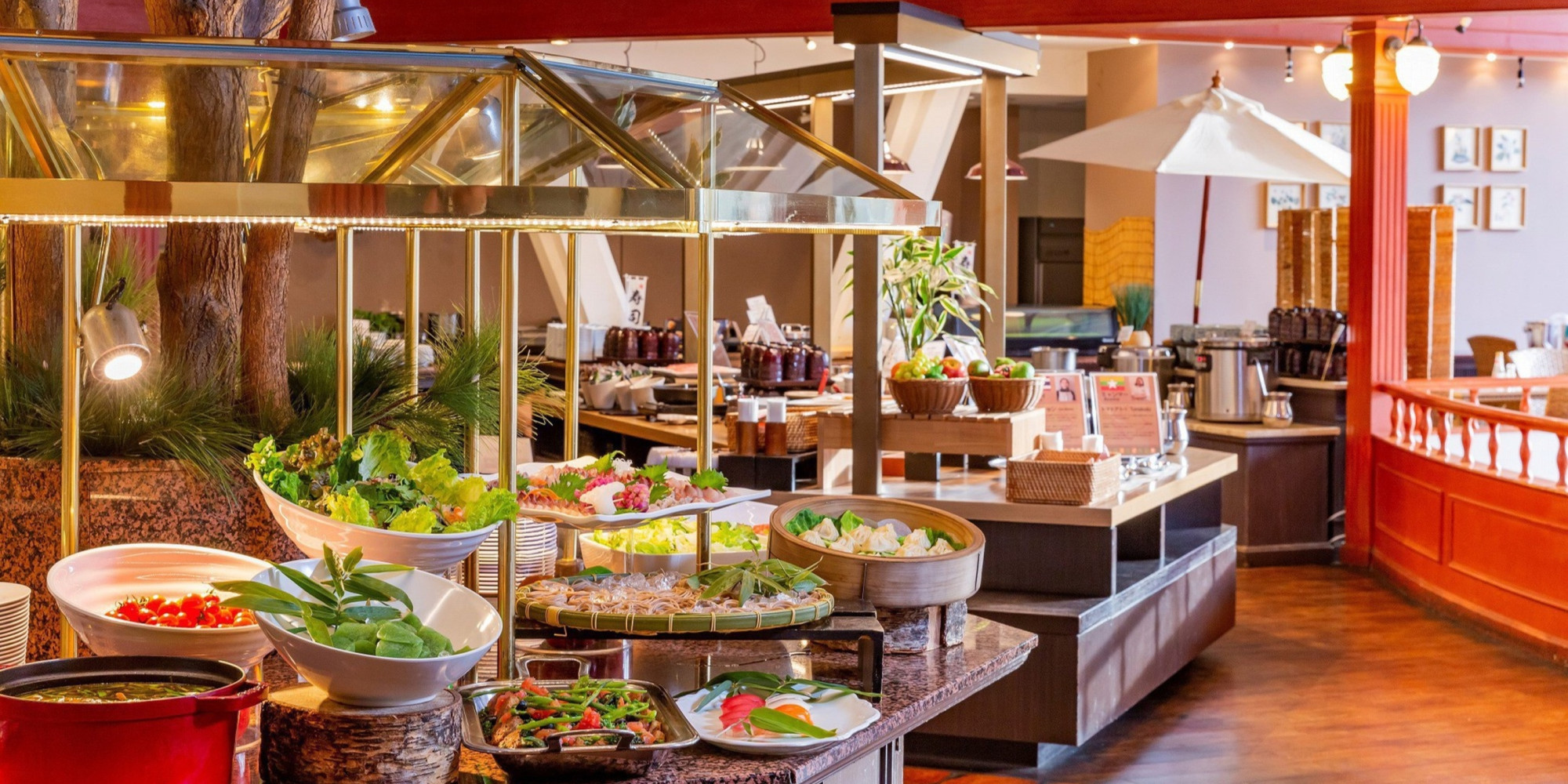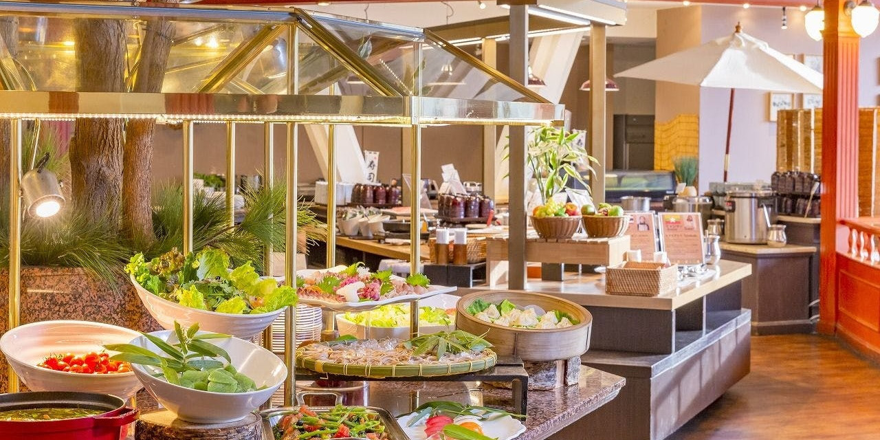 季節折々、ぐんまならではの食の提供にこだわった朝食と夕食を大きな窓から四季の景色を望む店内で、お楽しみいただけるブッフェダイニング。