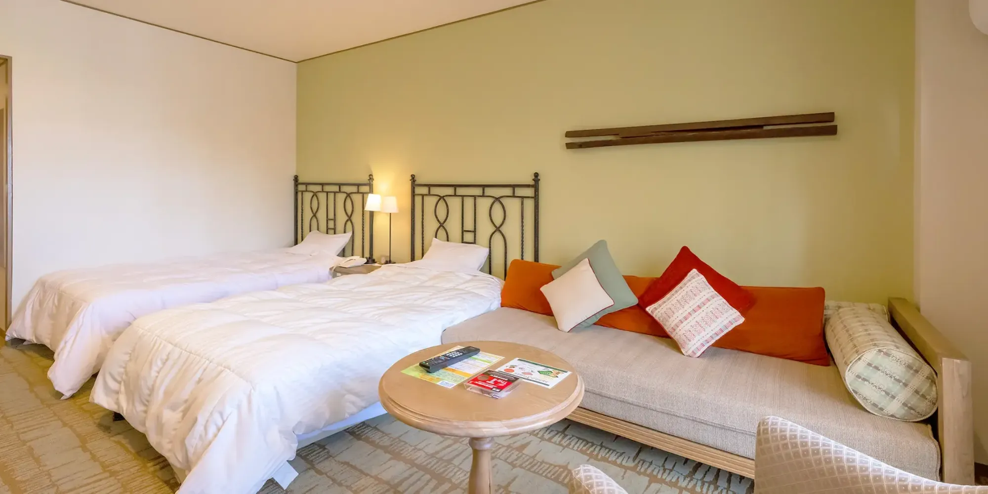 | 貸出備品 | 【無料】 空気清浄機、スタンドライト、アイロン、氷枕、そば枕、スマートフォン充電器 (Lightning、USB Type-C)、延長コード、 ワインオープナー、体温計、爪切り、車椅子 【有料】 ふぁみたの(トランプ、UNO、ジェンガorオセロ)、囲碁、将棋、麻雀 【子ども用貸出備品】 ベビーカー、ベッドガード、おねしょシーツ、おむつ用ごみ箱、お子様用便座、子ども用歯ブラシ、ベビーベッド(有料) |