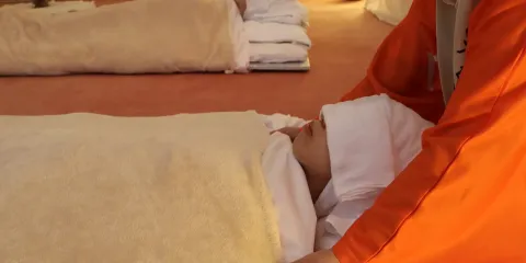 専属スタッフのレクチャーの元、かぶり湯と入浴を繰り返し、体を芯から温め、発汗を促すホテルヴィレッジ独自のリラクセーションです。
