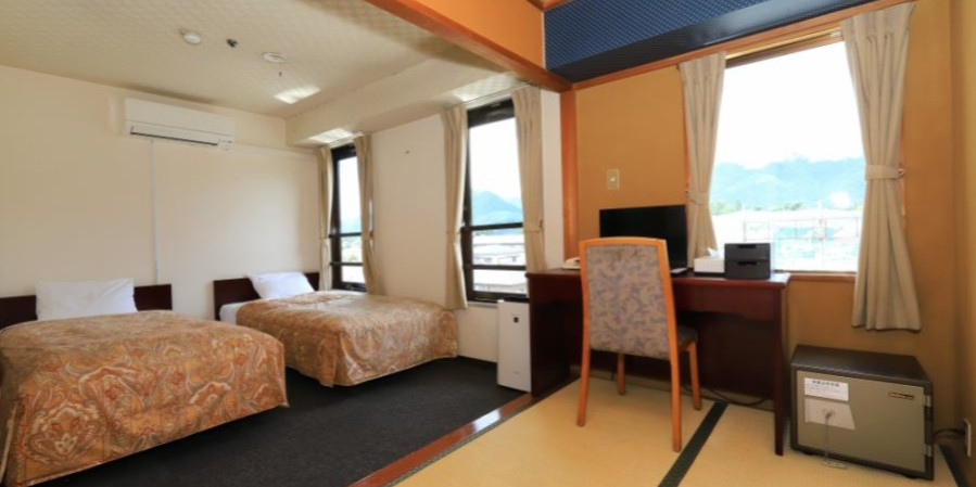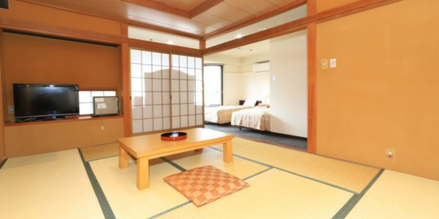 広めでゆったりと過ごせる、ツインベッド(洋室)+和室10帖のお部屋です。