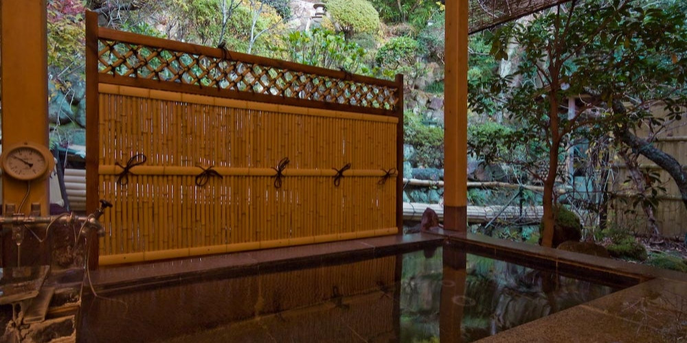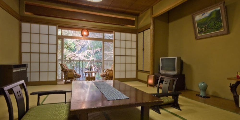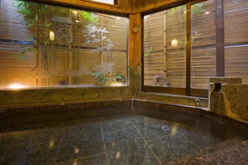 かけ流し温泉と併設のお食事用の源氏の間でゆったりとお過ごしください