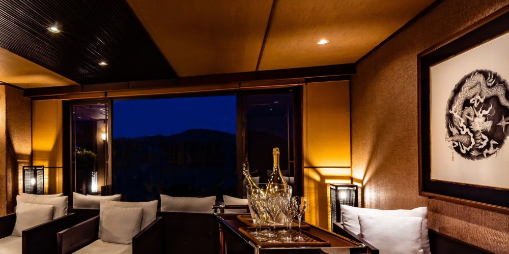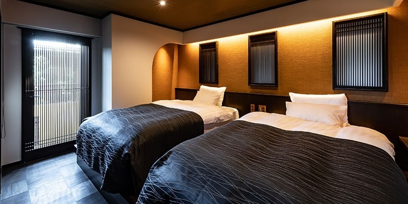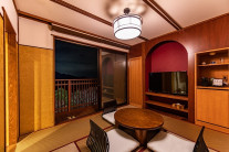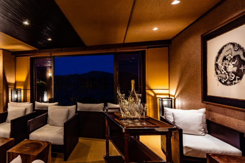 漆塗りや格子細工などの伝統工芸を設えた、日本文化を凝縮させた客室。
