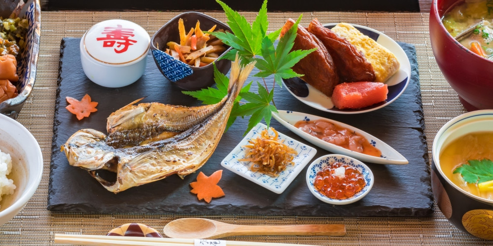 弓庵の朝食では、美容と健康をテーマに、味はもちろん見た目も楽しい「美健の膳」をお召し上がり頂けます。