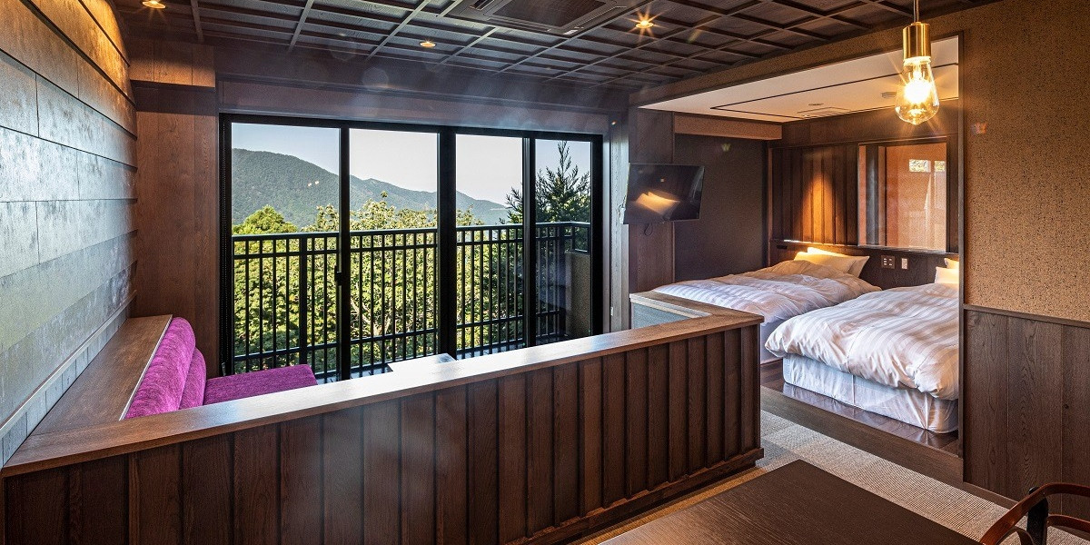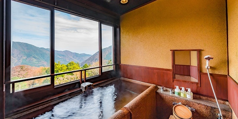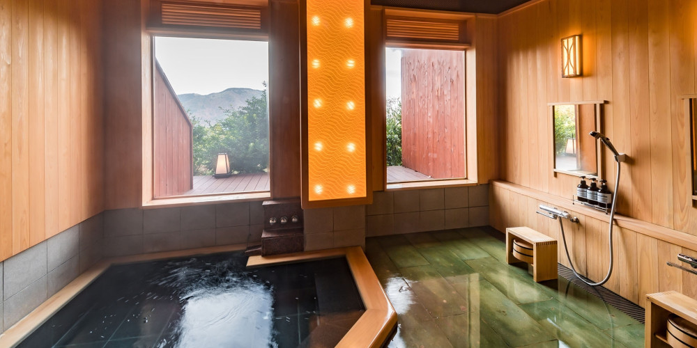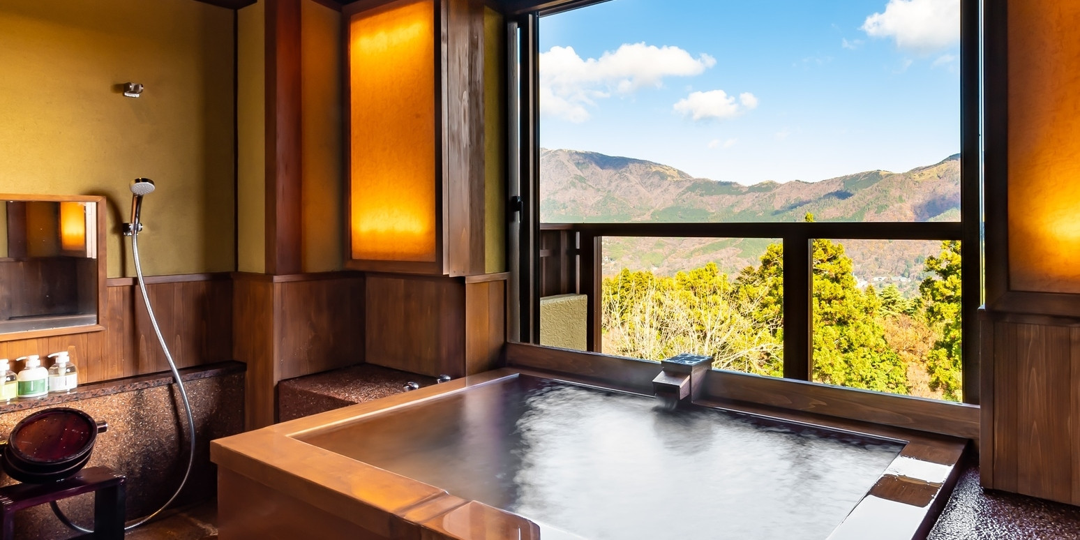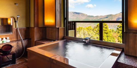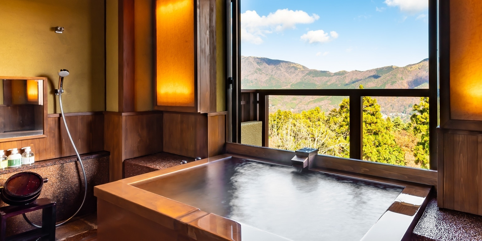 贅沢に香る檜と眼前に広がる雄大な箱根の山々は、きっと大自然の安らぎを感じさせてくれるはずです。
