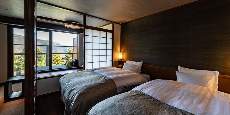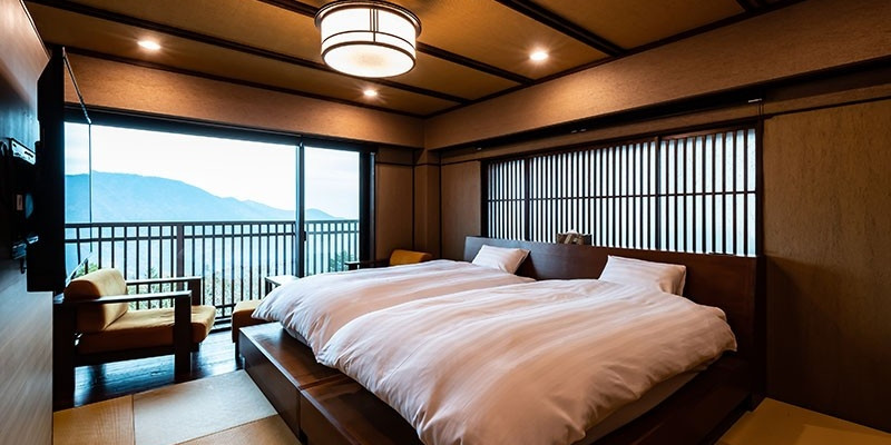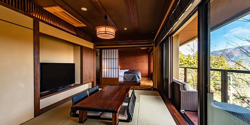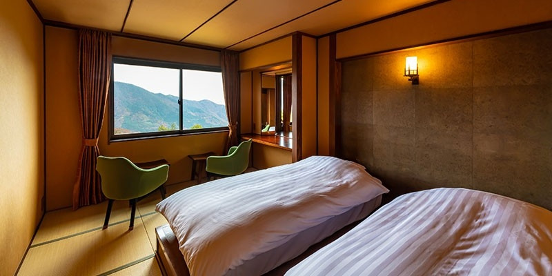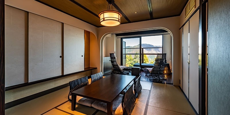 落ち着いた雰囲気の和室からは雄大な箱根の山々と、好天の際には相模湾も望めます。