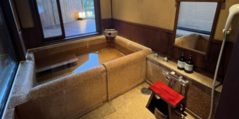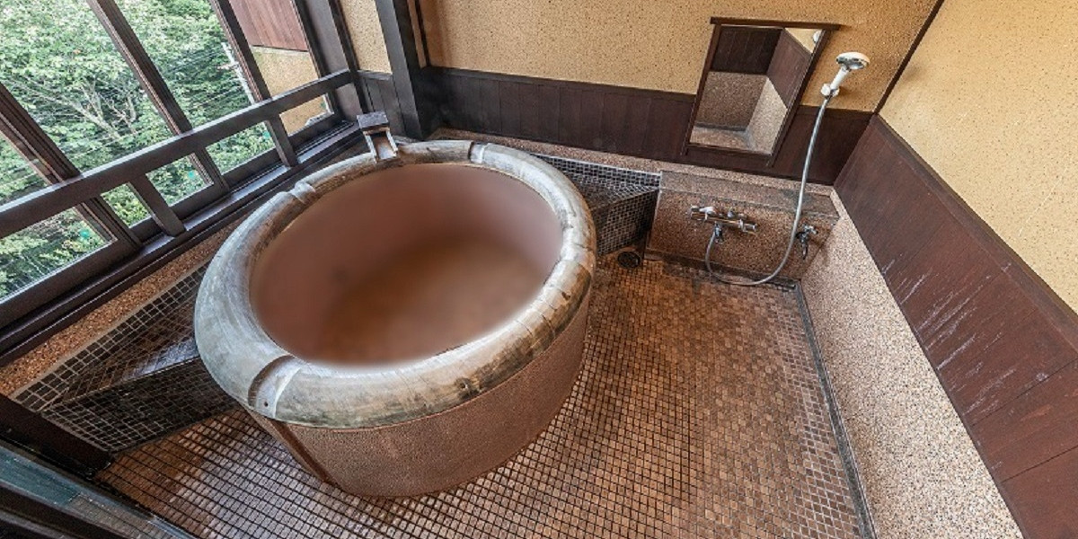 大浴場はなし、各客室に半露天風呂を備えております お部屋・お食事