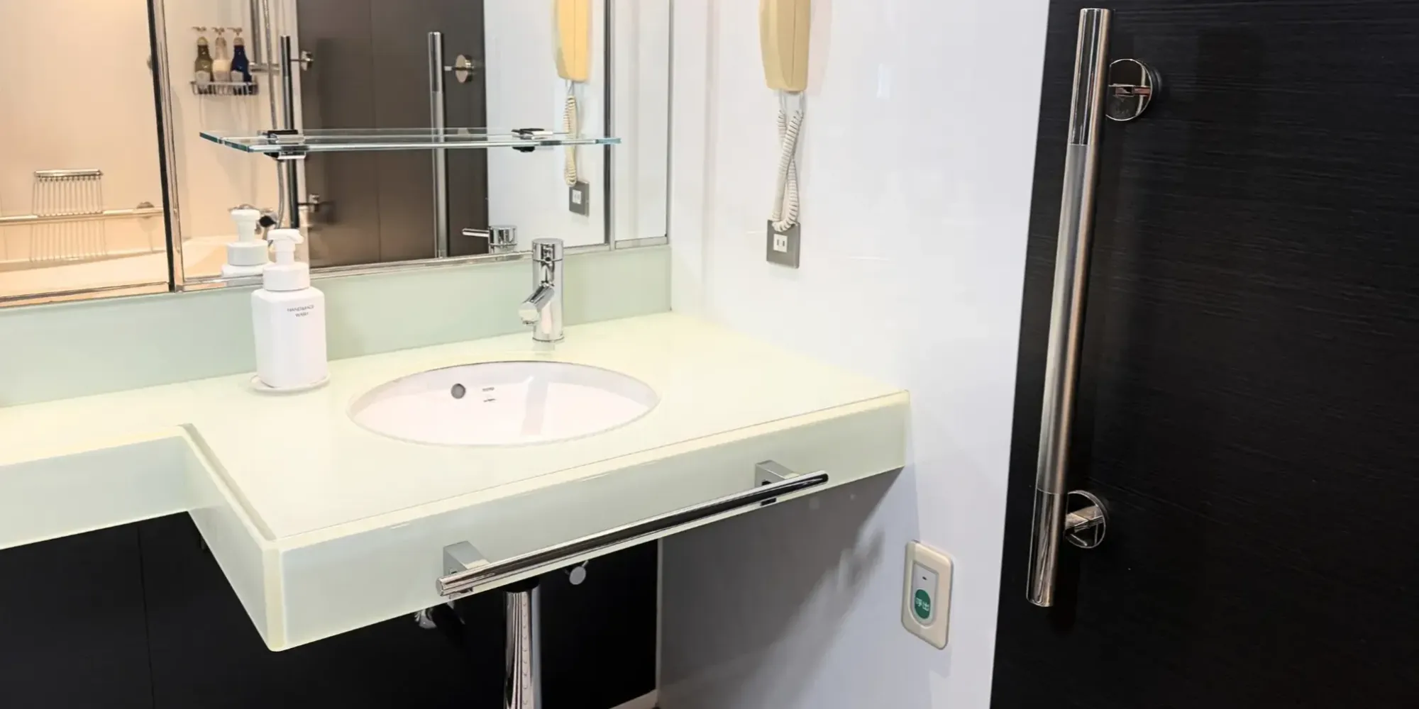 ユニバーサル使用の客室で、全体にゆとりを持たせた間取りになっています。
