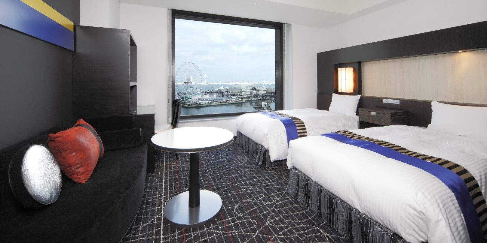 開放感のある窓からきらびやかな観覧車などを見ることが出来ます。