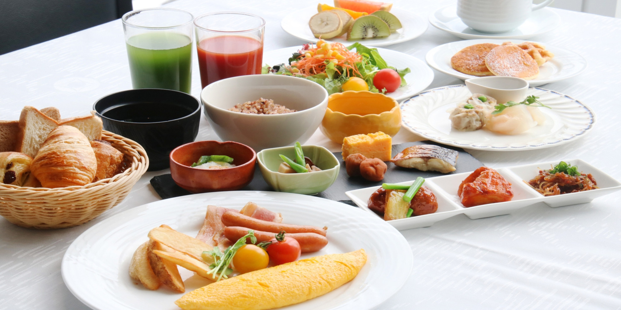 高さ3mの窓から「みなとみらいの空」が一望できる朝食タイム。