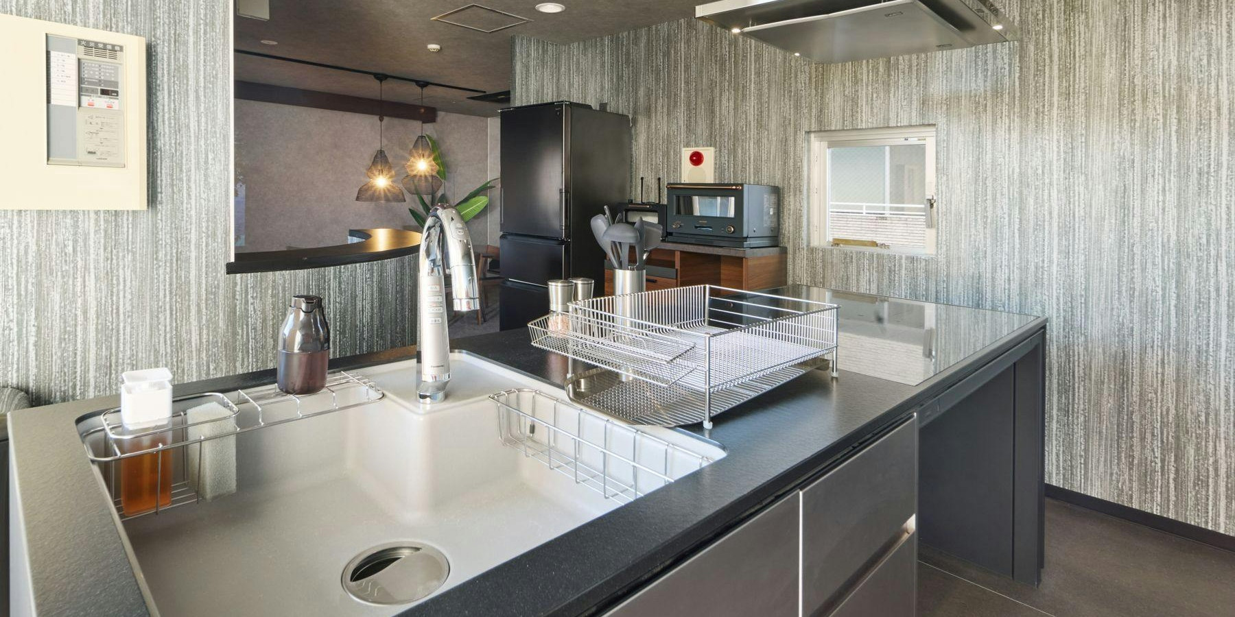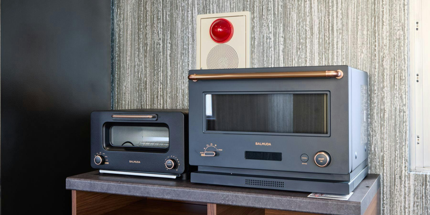 フルキッチンを設置。バルミューダの電子レンジ、オーブントースターを設置。外食に頼らず、あたらしくおしゃれなキッチン家電を使ってみませんか?